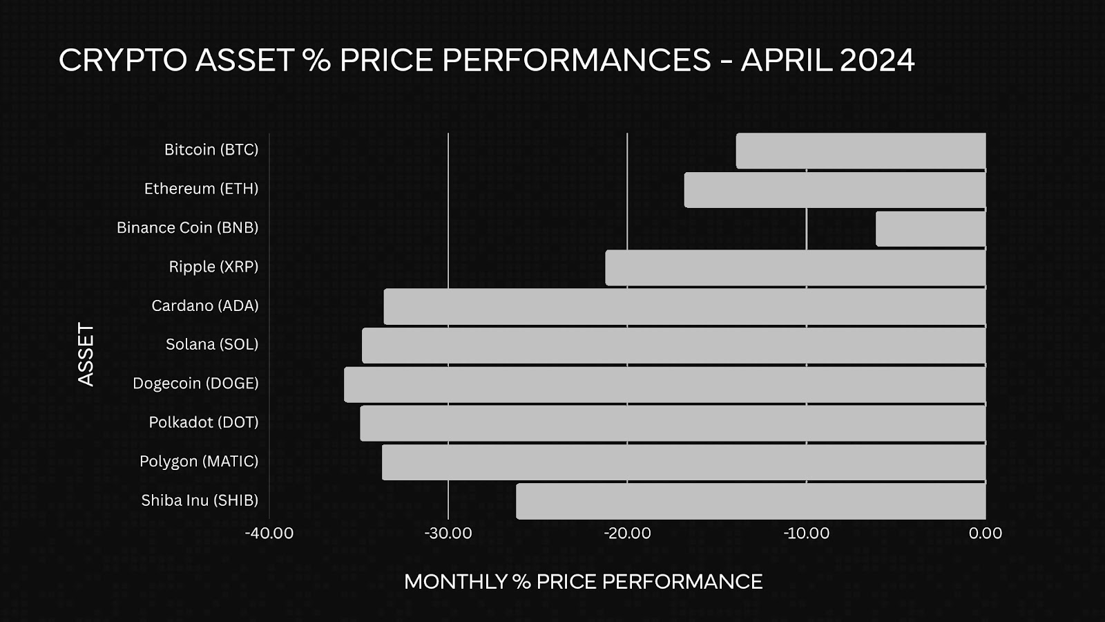 Bitcoin (BTC) also saw a drawdown for the first time this year, closing 13.1% lower month-on-month.