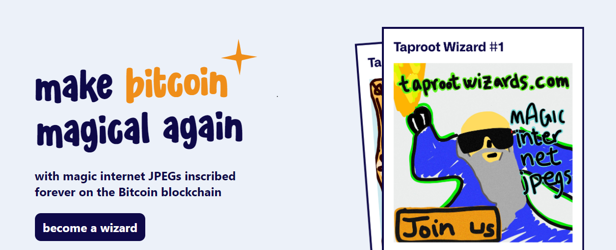 Created by Udi Wertheimer, Taproot Wizards is a profile picture (PFP) collection of unique JPEG wizards. The Ordinals NFT project hopes to “make Bitcoin magical again” by reviving the humorous, creative, and unique culture that existed in its early days.