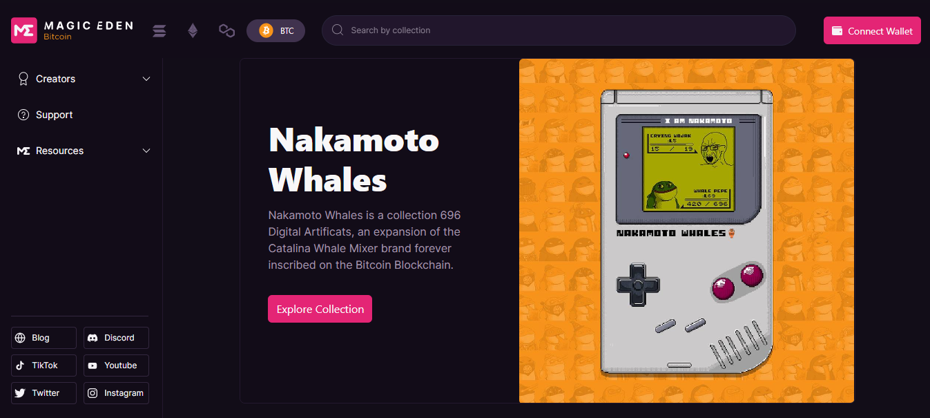 Magic Eden is a marketplace for buying and selling Bitcoin Ordinals. You can connect your Xverse, Hiro, or Unisat wallet to trade Bitcoin Ordinals on this platform. Magic Eden takes a 2% commission on all transactions. Some of the featured collections include Ordinal Penguins, Nakamoto Whales, Twelve Frog, and Bitcoin Bandits.
