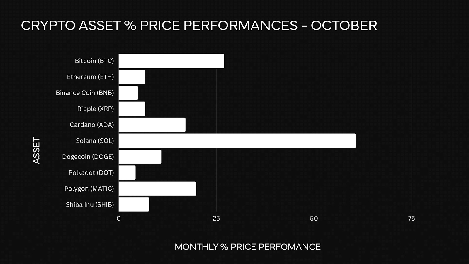 Bitcoin (BTC) and Solana (SOL) were the standout performers in October, rallying by 27% and 60.7%, respectively.