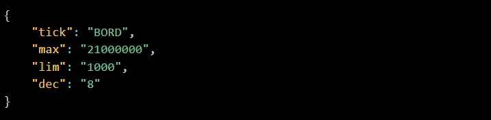 Once the file above is converted to CBOR, the token “BORD” is deployed using this command: