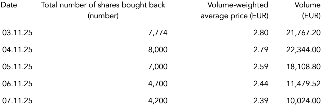 In the period from 03 November 2025 up to and including 07 November 2025 were 31,674 shares acquired as part of the share buyback. The start of the share buyback was notified by announcement of 15 September 2025 in accordance with Article 5 of Regulation (EU) No 596/2014 and Article 2(1) of Delegated Regulation (EU) 2016/1052.