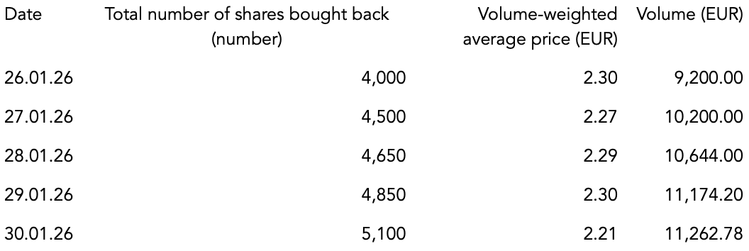In the period from 26 January 2026 up to and including 30 January 2026 were 23,100 shares acquired as part of the share buyback. The start of the share buyback was notified by announcement of 15 September 2025 in accordance with Article 5 of Regulation (EU) No 596/2014 and Article 2(1) of Delegated Regulation (EU) 2016/1052.