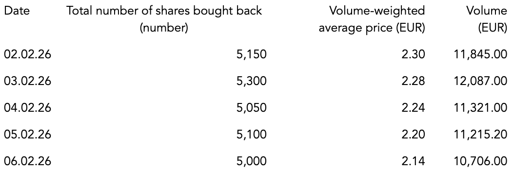 In the period from 02 February 2026 up to and including 06 February 2026 were 25,600 shares acquired as part of the share buyback. The start of the share buyback was notified by announcement of 15 September 2025 in accordance with Article 5 of Regulation (EU) No 596/2014 and Article 2(1) of Delegated Regulation (EU) 2016/1052.