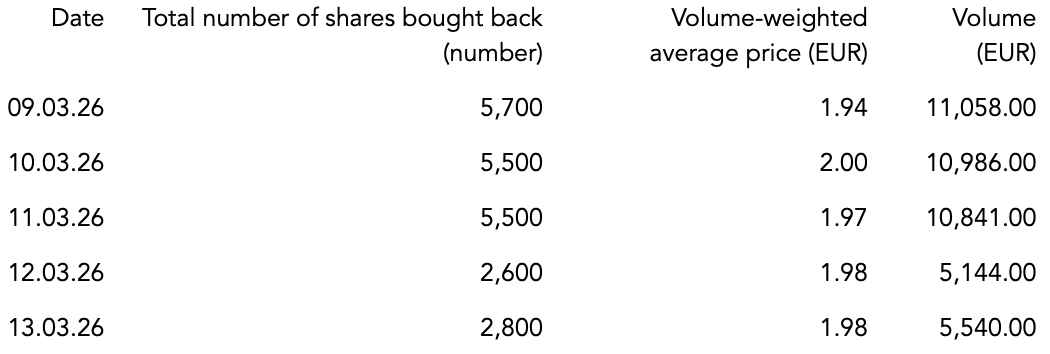 In the period from 09 March 2026 up to and including 13 March 2026 were 22,100 shares acquired as part of the share buyback. The start of the share buyback was notified by announcement of 15 September 2025 in accordance with Article 5 of Regulation (EU) No 596/2014 and Article 2(1) of Delegated Regulation (EU) 2016/1052.